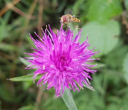 Above, the sky was thick and louring with cloud. Rain hung suspended, but it did not fall. I was glad of the cloud and the overcast conditions; perfect for the long walk I planned to spend the morning doing. Heat and sunshine slow me down and make me lazy, make me want to kick off shoes, dive in and out of shade or water. Late summer walking in cooler conditions is best for me. Few insects were about to begin with; even the usually busy hoverflies, seemingly curtailed by the quiescence of the morning, browsed flowers with lassitude.